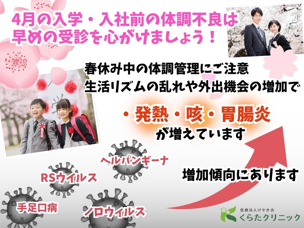 4月の入園・入学・入社を控え、春休み中の体調管理がとても大切な時期です。
