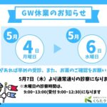 【ゴールデンウィーク休診のお知らせ】 誠に勝手ながら、下記期間を休診とさせていただきます。 5月4日(月)〜5月6日(水)
